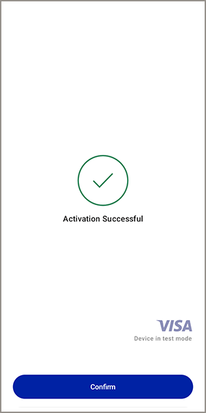 - When the Tap to Pay Ready app is installed and the activation code is accepted, the Activation Successful screen appears. TapConfirm.